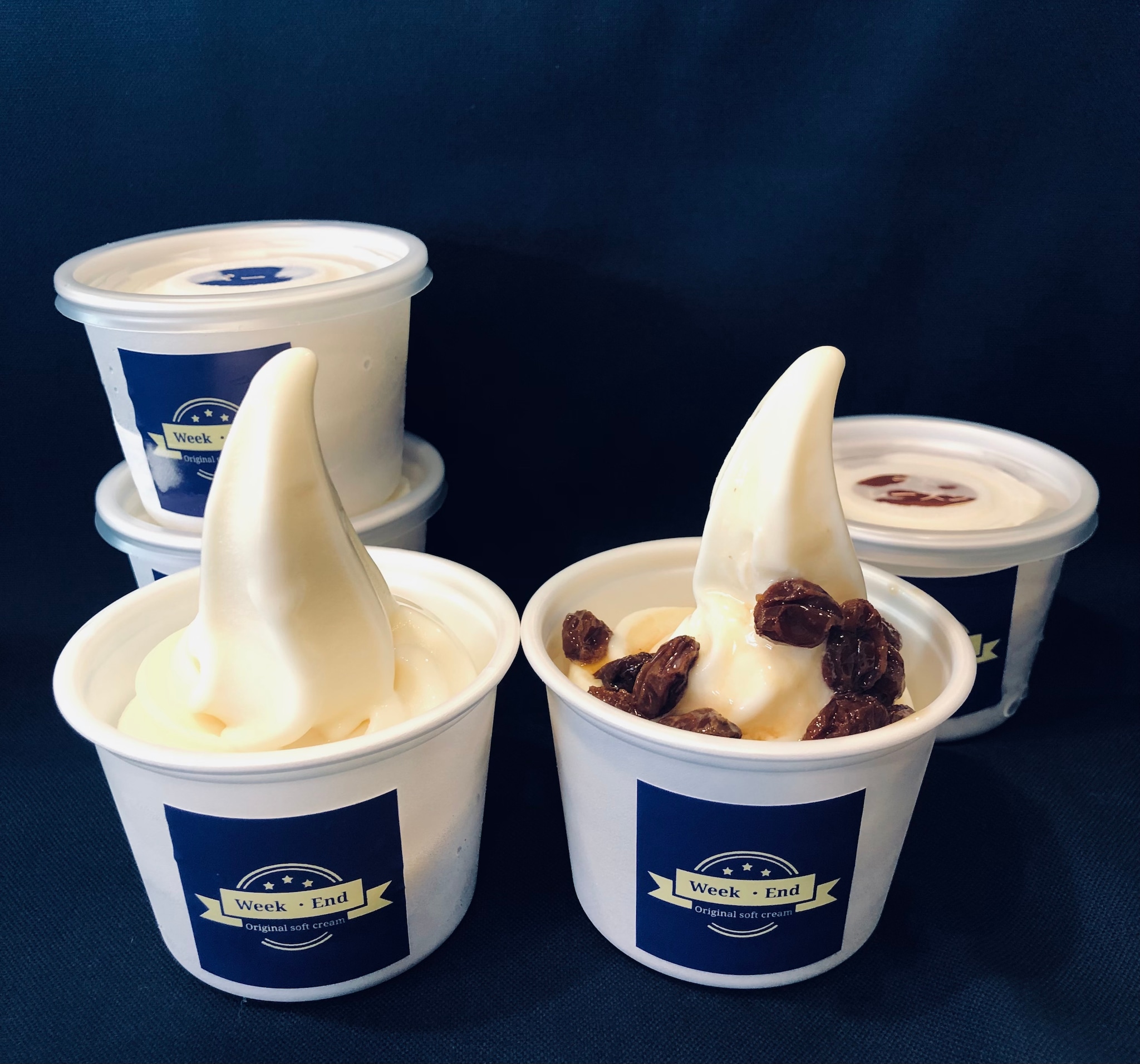 今回はまず当店1番人気のスタンダードなバニラソフトクリーム、大人の皆様に1番人気のラムレーズンソフトクリームの2種類をお届けできる準備を整えました。
